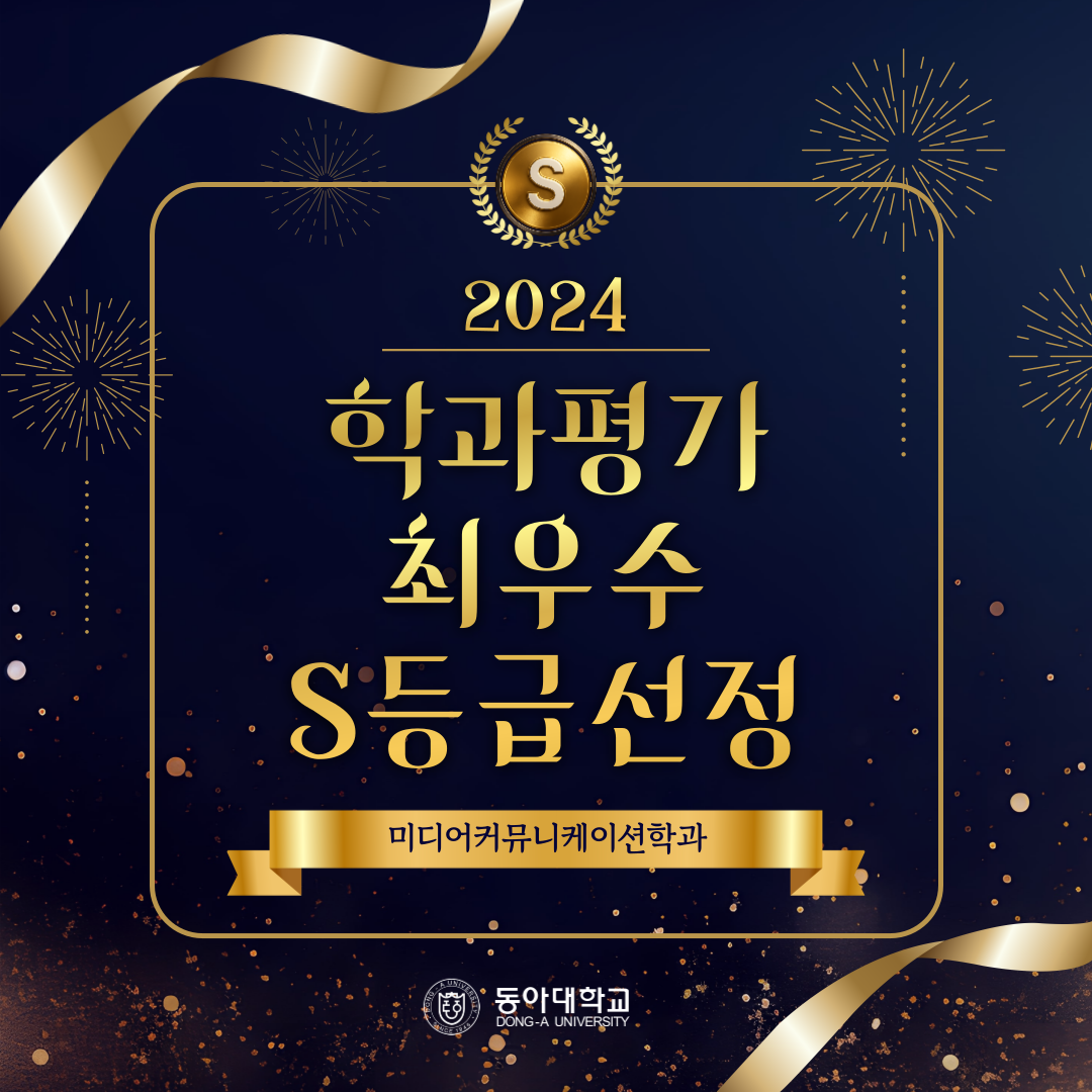 2024학년도 학과평가에서 미디어커뮤니케이션학과가 최우수 S등급으로 선정되었습니다.