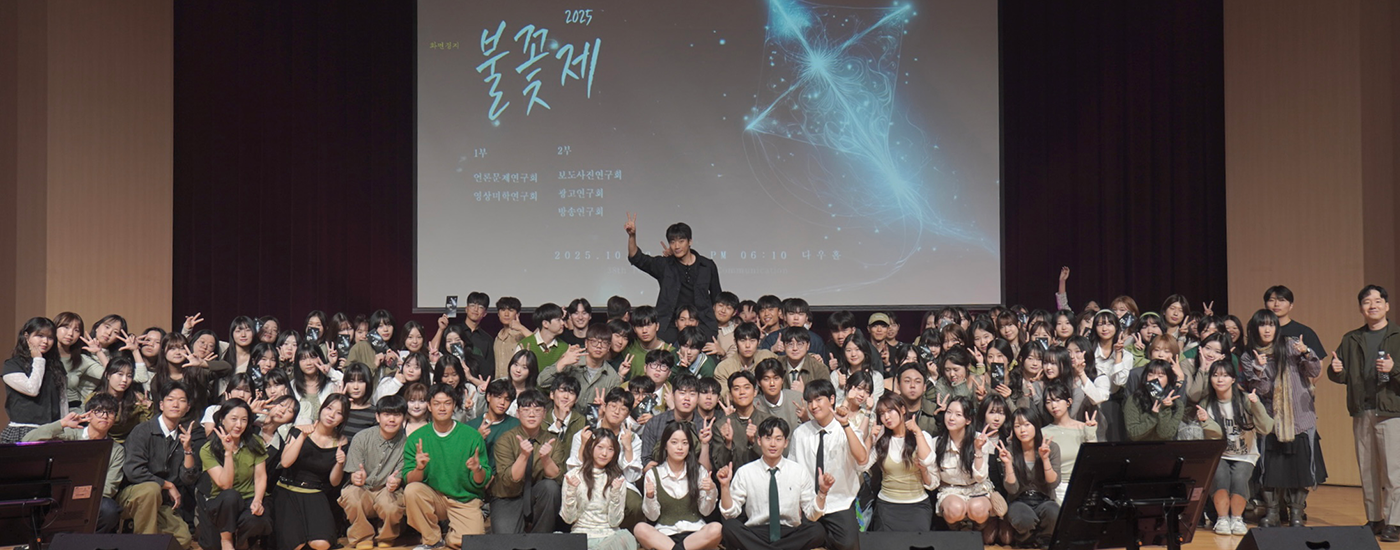 메인비주얼1 동아대학교 미디어커뮤니케이션학과언론이 입을 다물면 돌들이 일어서서 외칠것이다. 그대 언론학도여, 말하라. 2026 졸업식 메인비주얼2 동아대학교 미디어커뮤니케이션학과언론이 입을 다물면 돌들이 일어서서 외칠것이다. 그대 언론학도여, 말하라. 2024 불꽃제 메인비주얼3 동아대학교 미디어커뮤니케이션학과언론이 입을 다물면 돌들이 일어서서 외칠것이다. 그대 언론학도여, 말하라. 2025 체육대회 메인비주얼5 동아대학교 미디어커뮤니케이션학과언론이 입을 다물면 돌들이 일어서서 외칠것이다. 그대 언론학도여, 말하라. 2025 미디어콘텐츠 이전 장면 1 다음 장면 정지 재생 새로운 소식 공지사항 더 보기 학과홍보 더 보기 이전 장면 다음 장면 정지 재생 학과소개 진로로드맵 교수진 소개 실습실·장비 안내 포토갤러리 더 보기 학과소개 학생 여러분과 언제나 함께하는 미디어커뮤니케이션학과가 되겠습니다! 학과 SNS 이미지 배너2 준비중입니다. 학생활동 사이버캠퍼스 대학원 소개 장비대여 캠퍼스맵 이전 장면 다음 장면